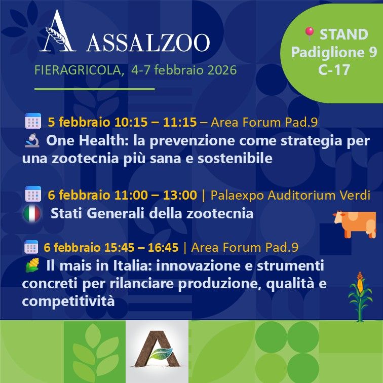 La presenza di Assalzoo a Fieragricola 2026 si declina su varie dimensioni informative. Oltre alla presenza durante tutta la durante della manifestazione presso lo Stand Padiglione 9 – C17, l’Associazione promuove un evento sulla filiera zootecnica e due workshop sulle tematiche di settore. Di seguito vengono riassunte le informazioni principali relativi agli appuntamenti promossi da Assalzoo: